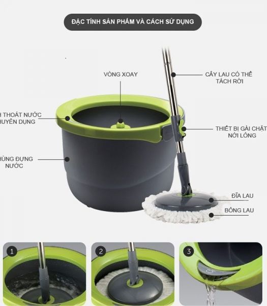 Sản phẩm sử dụng cơ chế vắt ly tâm hiện đại, giúp bạn vắt nước không bị bắn ra ngoài, bạn cũng không cần phải đạp chân hoặc vắt tay dễ gây đau lưng và mỏi cơ.