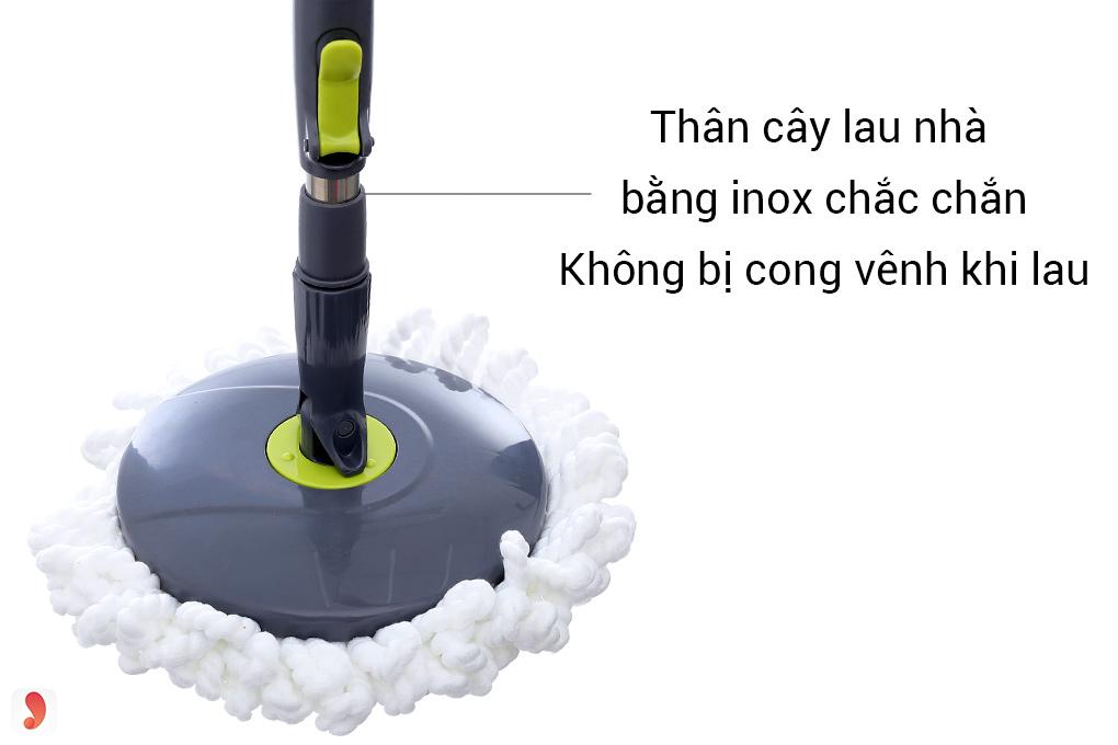 Thân cây được cấu tạo bằng inox chắc chắn, không hoen gỉ, có khả năng chịu lực tốt. Bạn có thể tháo lắp và điều chỉnh độ dài theo ý muốn với khóa nhựa tiện dụng. Bên cạnh đó, phần đầu cây lau được nối với thân bằng một vòng nhựa liên kết cho phép sản phẩm có thể chuyển động xoay 360 độ độc đáo.
