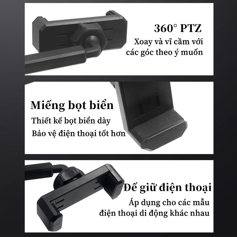 - Kẹp điện thoại 360 độ quay được mọi góc giúp bạn chọn được góc quay đẹp.