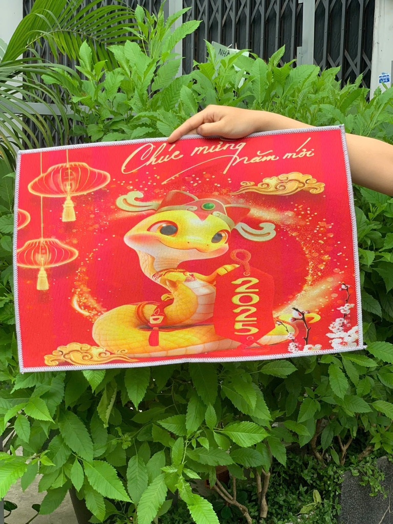(Thảm Đơn) Thảm Tết Màu Đỏ Sắc Xuân Về 2025 (Bao 300 Cái)